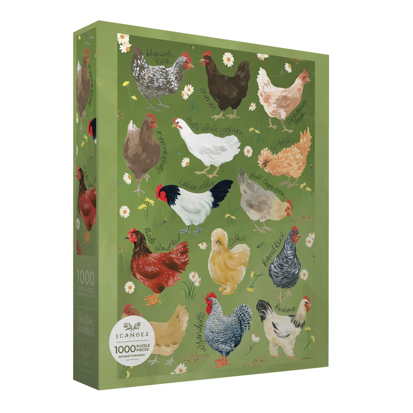 Bring the charm of the coop to life with our Chicken Meadows 1,000-Piece Jigsaw Puzzle. Featuring a vibrant farm scene, this puzzle showcases beloved chicken breeds like Plymouth Rock, Maran, Rhode Island Red, Silkie, and more. Each piece highlights the intricate details of these stunning chickens, offering a satisfying challenge for puzzle enthusiasts and bird lovers alike. As you assemble the puzzle, enjoy the rich textures of the chickens' feathers and the tranquil countryside setting. Perfect for chicken enthusiasts or anyone who loves farm life, this puzzle is a fun way to unwind. Once completed, it makes a beautiful piece to frame and display. Format | 1,000-piece jigsaw puzzle Features | High-quality, precision-cut pieces, full-color design Size | Completed puzzle: 26.77×19.29" Difficulty | Moderate