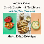 An Irish Table: Classic Comforts & Traditions with Lori Greenwood March 12th, 2026 $40