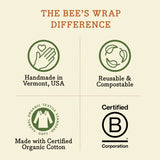 Choose Bee's Wrap Lunch Pack for a sustainable, all-natural option. Easily wrap up your sandwich, snacks, or treats and even use it as a placemat. Once finished, simply fold and save for later. These wraps are washable, reusable, and fully biodegradable. Warm them up with your hands to wrap around food or dishes. Handcrafted with care in Vermont by a certified B Corp since 2012, using responsibly sourced ingredients such as GOTS-certified organic cotton, beeswax, jojoba oil, and tree resin.