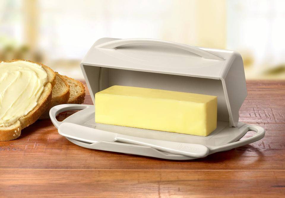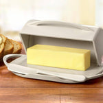 The innovative Butterie works wonders in contemporary or stainless steel kitchens. Its flip-top cover safeguards butter while keeping your counters spotless, and the shatterproof, BPA-free design can handle the dishwasher with ease. We even threw in a matching spreader and cradle, complete with a clever hidden edge for scraping your knife clean. With a generous capacity of two sticks, this butter dish features wide handles for effortless grip and a non-slip base for added stability. And here's a fun fact - you don't need to refrigerate your butter! Join us in "Spreading the Word" with Butterie.