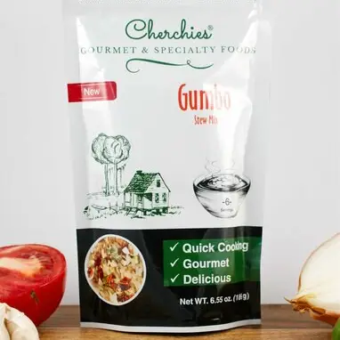 Gumbo - Ready in under 35 minutes! Spicy and thick soup with rice, vegetables, and flavorful seasoning. Add your choice of meat or seafood - chicken and sausage recommended. Serves approximately 6 (1 cup) servings.