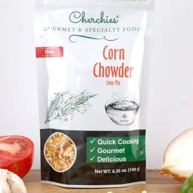 Corn Chowder - This soup tastes as good as fresh picked corn! The mix of vegetables, pasta, rice and seasoning is a delicious way to warm your stomach. Makes approximately 6 (1 cup) servings.