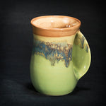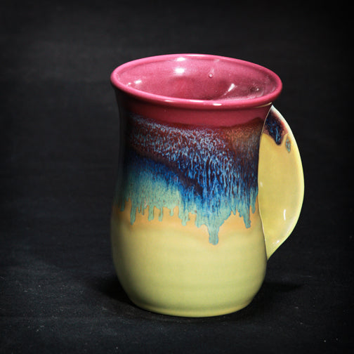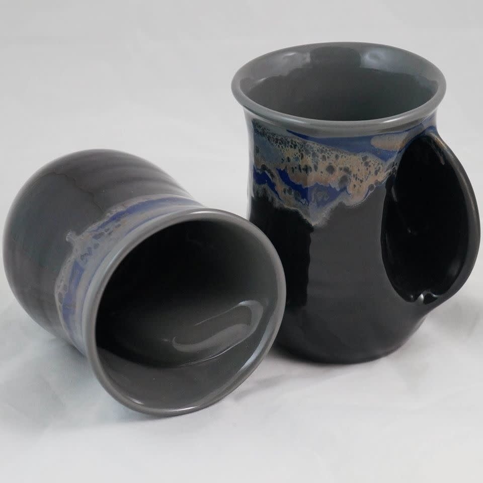 Morning coffee never looked so good! Your fingers will rest comfortably inside the pocket of this ergonomically designed mug.