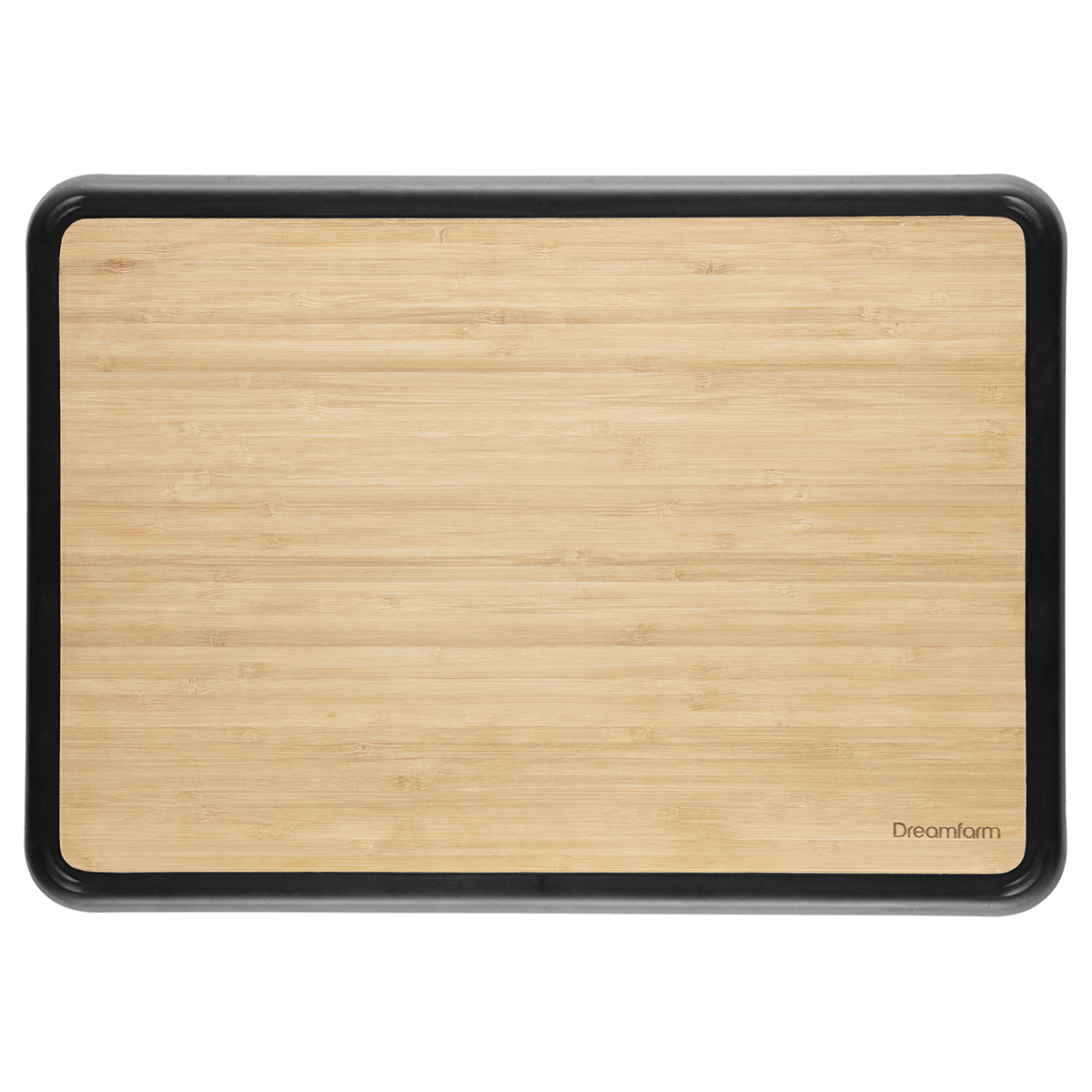 Experience the ultimate in cutting board innovation with Dreamfarm's award-winning Fledge Bamboo Small. Featuring a sticky base and unique flip-up edges, this double-sided bamboo cutting board is perfect for preventing food from falling or rolling off when being moved. Its three layer cross-ply bamboo construction guarantees durability and it's even dishwasher safe. With non-slip rubber feet and a generous juice groove on both sides, it's a game changer for all your carving needs!