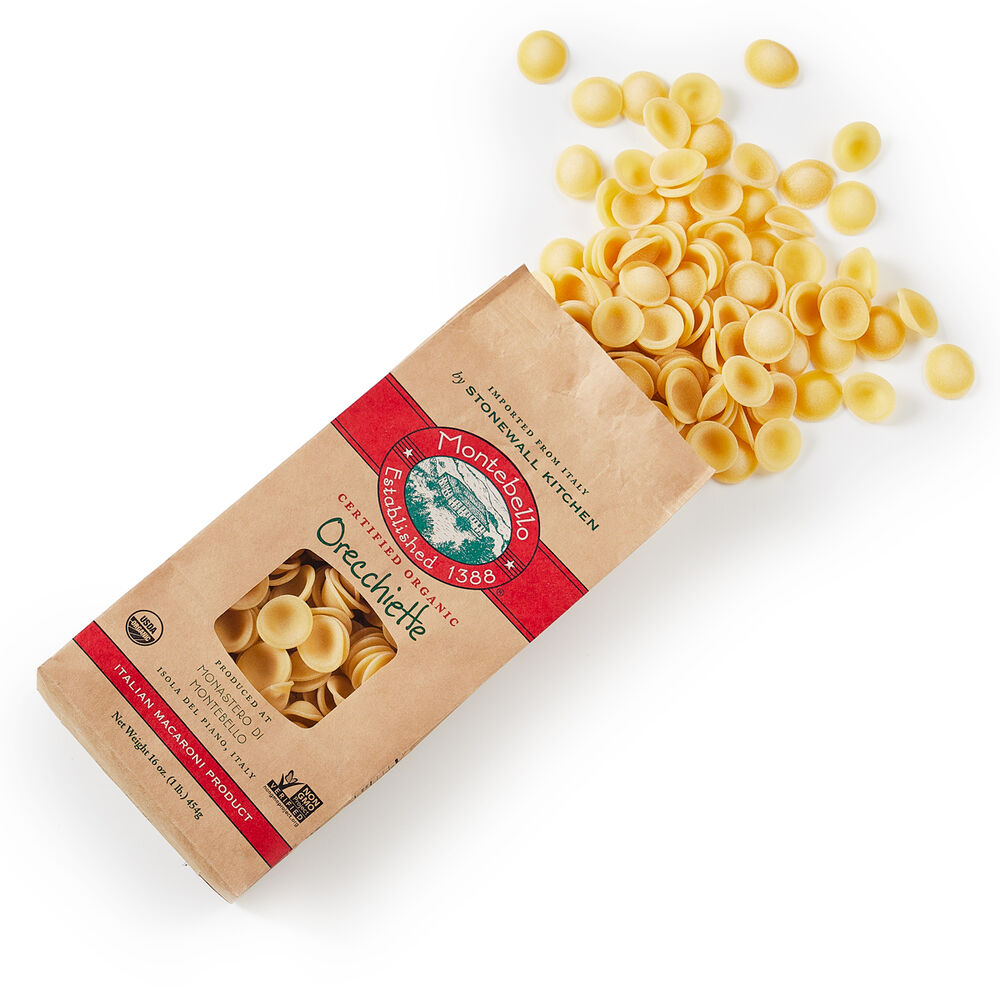 Orecchiette pasta, with its concave shape resembling "little ears" in Italian, is ideal for hearty meat or vegetable sauces. Hailing from southern Puglia, this traditional Italian pasta is widely enjoyed throughout the country. Our orecchiette has a unique "bite" due to its thin edges and thicker center, resulting in a satisfying texture when paired with a variety of dishes. For a delicious option, try sautéing it in olive oil with broccoli rabe and sausage.