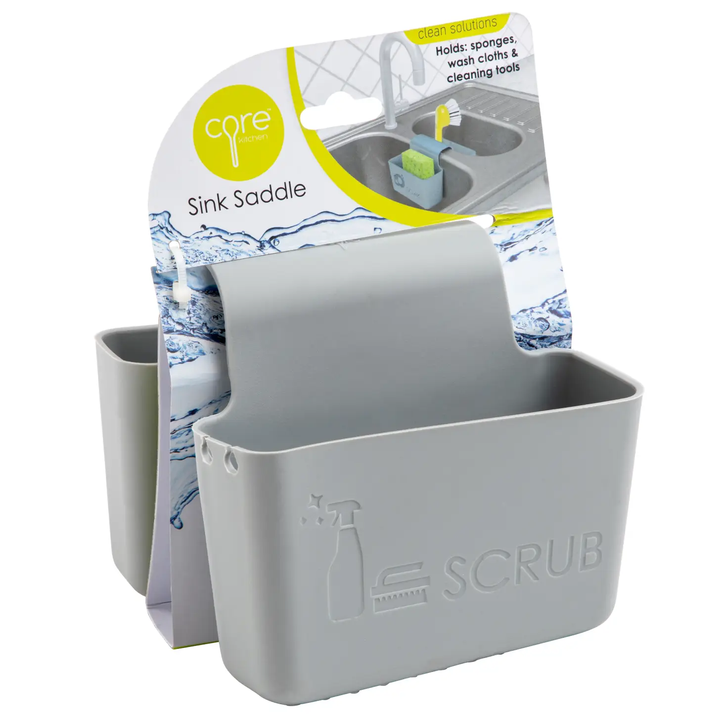 Keep your sink organized and your scrubbing tools within reach with the Core Home Sink Saddle. Its durable and flexible design fits most standard double sinks, with drainage holes to keep your tools odor-free. No setup needed, no fuss with suction cups or hooks. Just saddle up and say goodbye to mess!
