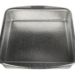 With a 9 inch square interior, this bakeware showcases a unique pebble pattern from Doughmakers. The pebble pattern helps promote even browning and easy release. Its natural non-stick surface removes the need for oils or sprays and promotes healthier baking. Made from highly durable, rust-resistant aluminum, it maintains top-notch performance, even if scratched. For best results, wash by hand using hot soapy water.