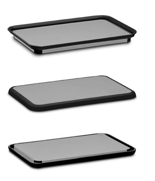 Fledge is the ultimate two-sided cutting board. With its creative flip-up edges, you can easily transport food to a pot, bowl, or table without fear of it falling or rolling off. Fledge has non-slip rubber feet on both sides, knife-friendly patterns on both sides, and a spacious juice groove on the underside for effortless carving.