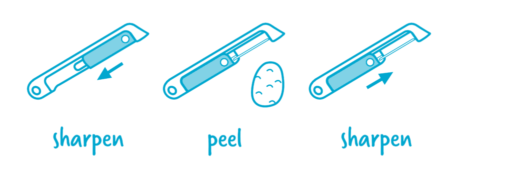 Sharple is a peeler that automatically sharpens itself every time it's cover is opened or closed. Never a dull moment. The sharpest tool in the shed. ;)
