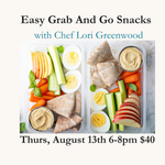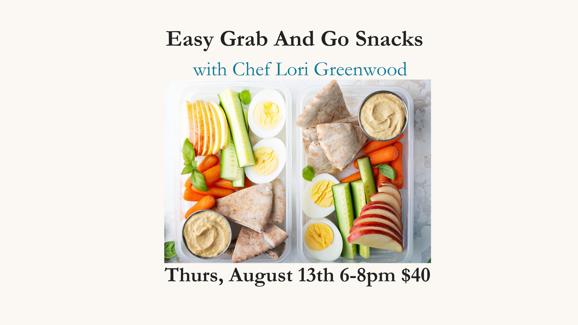 Easy Grab And Go Snacks with Chef Lori Greenwood Thursday, August 13th 2026 $40