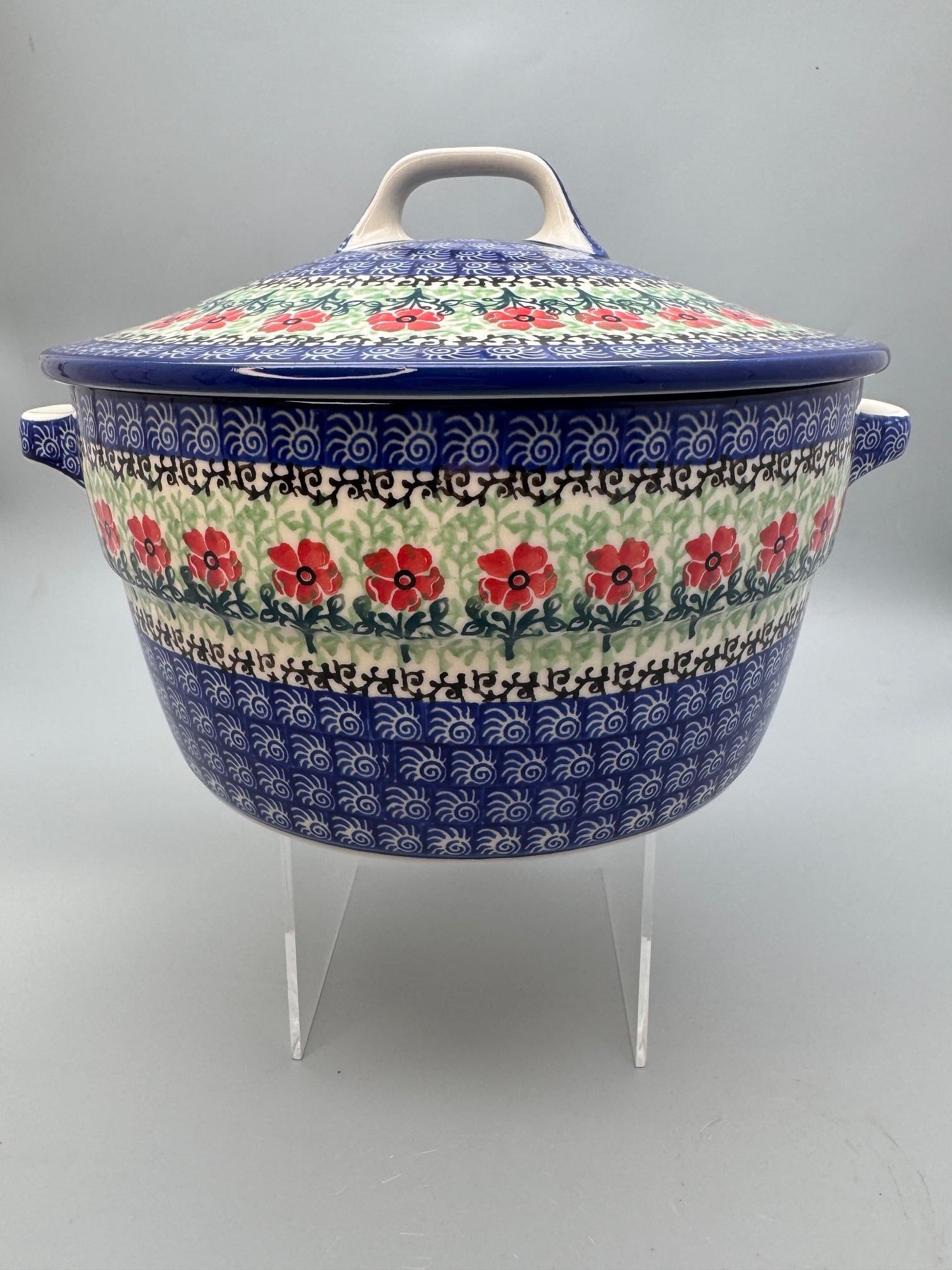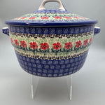 Covered Casserole Red Flowers Pattern 9.5in w/handles, 6in tall. w/handle.