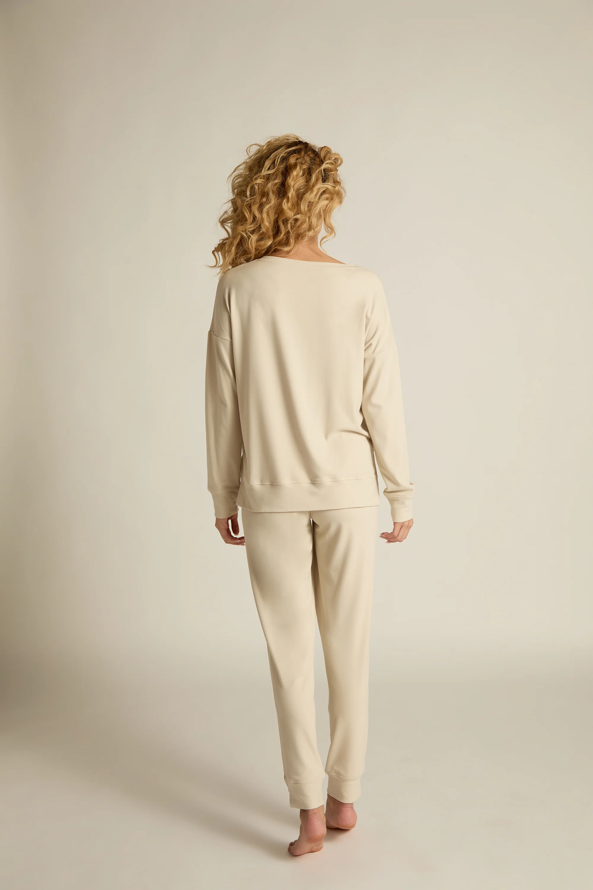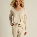 The familiarity of your favorite sweatshirt, all dressed up. A soft V-neckline and dropped shoulders offers unconstrained comfort in a sleek silhouette.