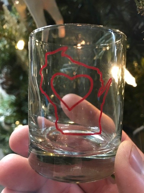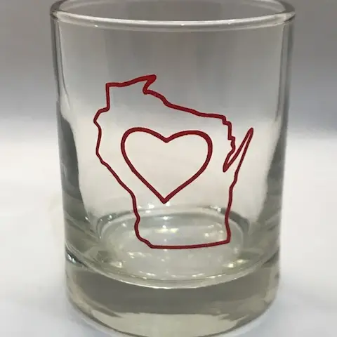 This cute 3 oz glass can be used as a votive or a shot glass or whatever you might need to show your Wisconsin Love!