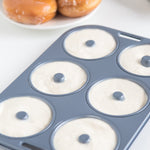 Make fresh donuts at home! This Donut Pan makes 6 perfectly shaped donuts in whatever flavors you can think up! Its non-stick coating releases the donuts easily without the mess and makes clean up easy!