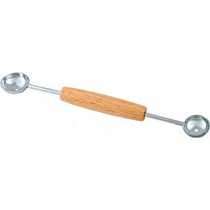 This Melon Baller is a versatile, double-ended tool for crafting the perfect melon balls. With a scoop in two sizes, it's sure to liven up your fruit displays. The wooden handle and stainless steel construction make it easy to handle and durable!