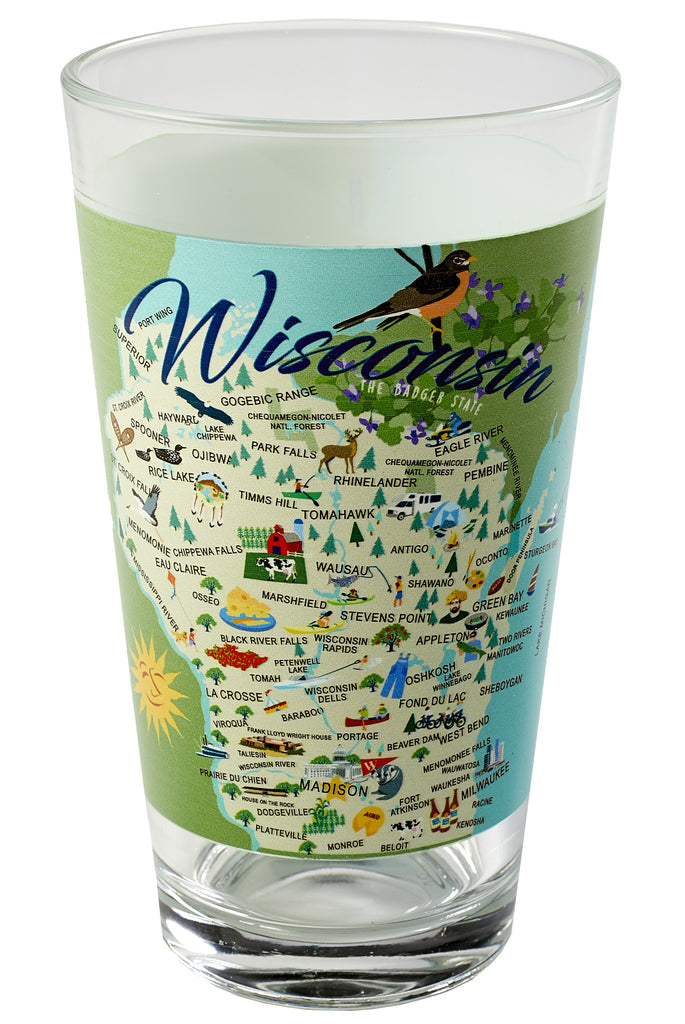 This pint glass from Galleyware has a beautiful design that highlights favorite Wisconsin locations. Makes a great gift for any Wisconsin lover!