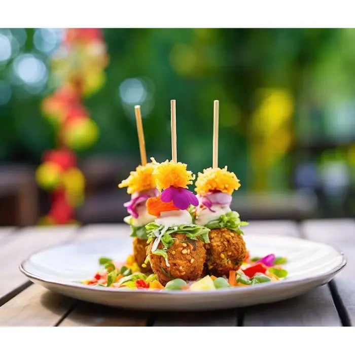 HIC Kitchen's all-natural Bamboo Skewers do it all - prepare, cook, serve, and even finish off beverages. These eco-friendly and durable skewers securely grip food and won't transfer heat to your hands or scratch surfaces. Simply pierce food with the pointed end, slide it to the center, and you're ready to grill, roast, broil, bake, or serve. They're perfect for everyday meals or effortless entertaining.