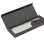 This knife boasts a broad and sturdy blade, complete with a tapered ground edge. Its beveled edge and well-balanced construction make it ideal for effortlessly cutting through tough materials like poultry bones. Additionally, the flat blade simplifies cleaning tasks.