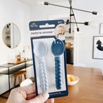 Each Sweetie Spoon has a looped handle that is easy for baby to pick up, complete with a braided pattern that adds texture as well as style! Made entirely of food grade silicone, Sweetie Spoons™ are gentle in baby’s mouth and are intended for ages 6 months and up.