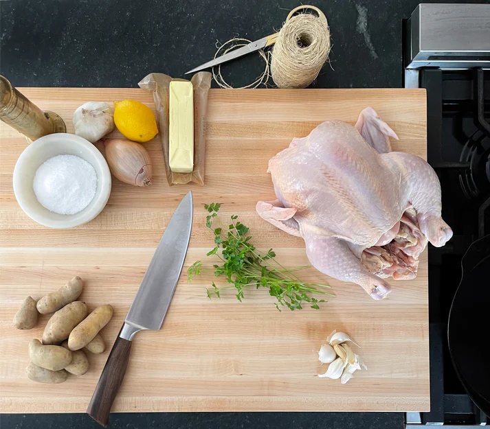 Our Professional Edge Grain Maple Board, in 24 x 18 inches, has all the characteristics of a butcher block countertop, with the flexibility of mobility. The board has routed handles for movability in your workspace. The board has the durability and surface space that is essential in a professional culinary kitchen. We have chamfered the edges so there are no sharp corners. The reversible design truly makes it an essential tool in any professional kitchen. This board weighs 17 lbs.