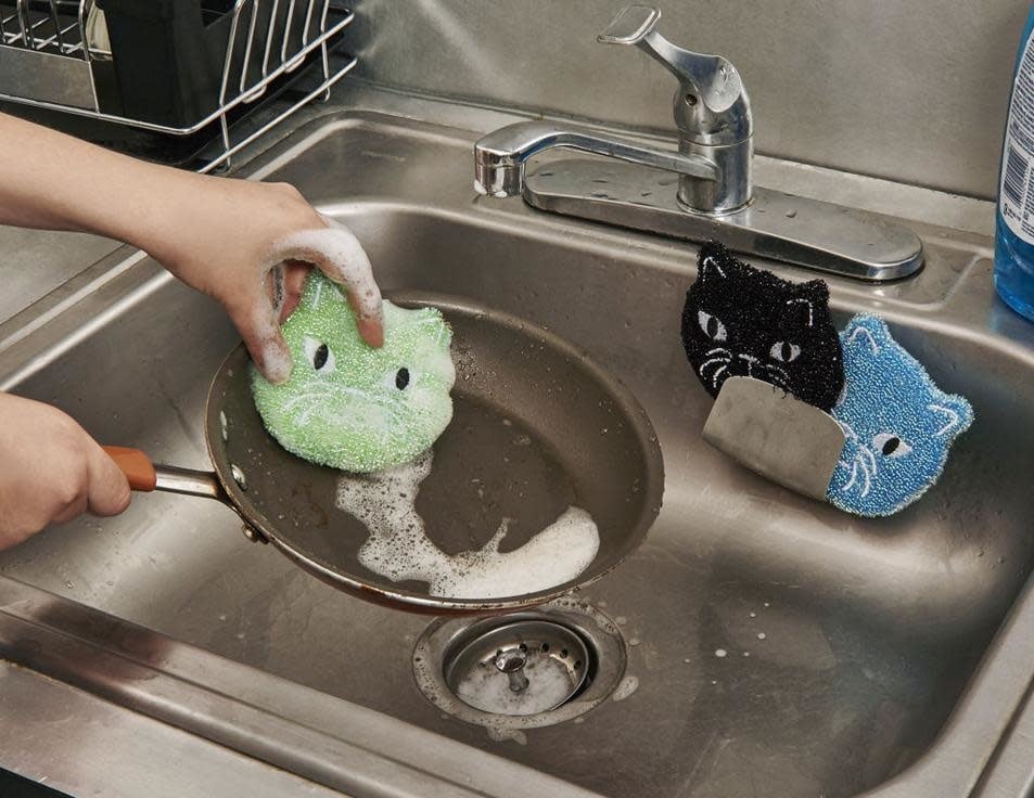 Purr-fect for any cat aficionado, these Kikkerland Cat sponges feature adorable designs and are gentle on your cookware. Keep them handy for tackling tough messes, then let them hang (like a cat would) from the stitched loops to dry for future use.