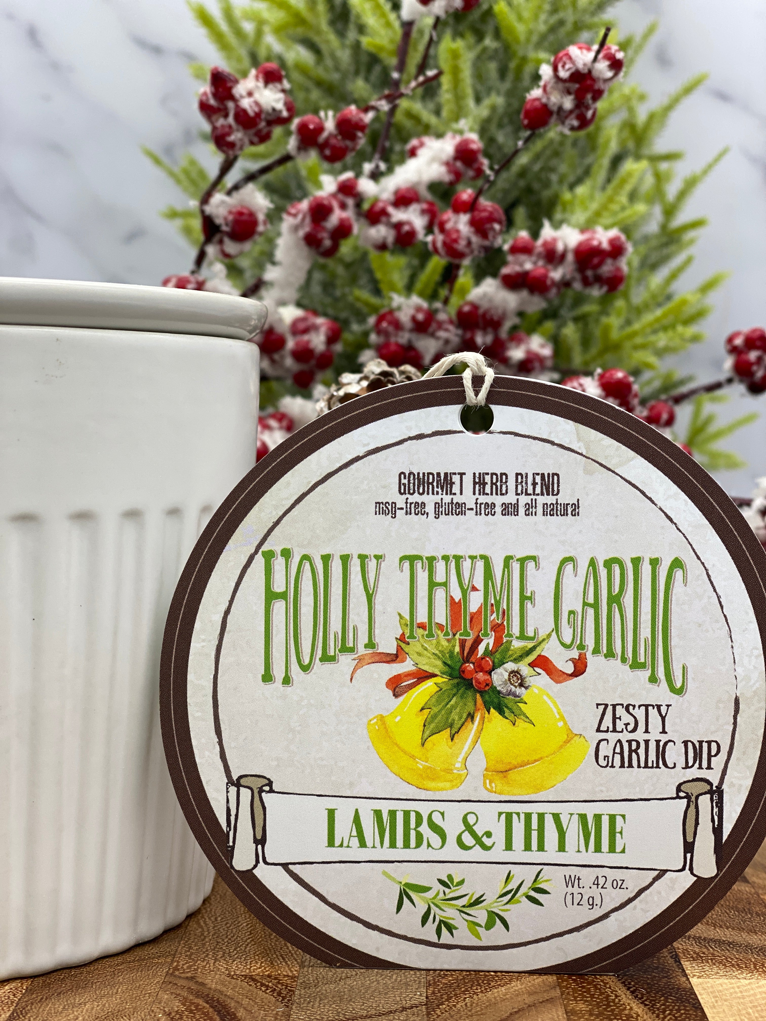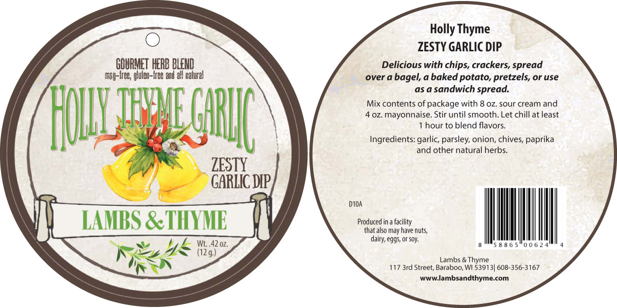 This is one of our most popular savory gourmet Herb Dips, Zesty Garlic Dip. The beautiful holiday packaging on this dip make it a great gift to tie on a package, put in a gift basket, or given as a hostess gift at your next holiday party.