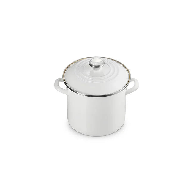 Tall straight sides and large capacity make enamel on steel Stockpots ideal for soups, stocks, cooking pasta and boiling seafood. Available in a range of convenient sizes, they deliver our fastest-heating performance of premium carbon steel glazed in our beautiful palette of colors. Lightweight and durable, carbon steel rapidly brings water to a boil to speed up prep and cooking and retains heat to keep food and liquids warm. The easy to clean colorful porcelain enamel coating is non-reactive and resistant to stains and flavors, making enamel on steel stockpots ideal for everyday use.