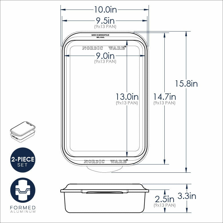 This pan does double duty: baking and storing your treats! It holds a standard-sized 9x13-inch cake, and after you're done baking, just pop on the metal lid for a fresh and portable dessert. Perfect for your next potluck or just keeping your goodies fresh at home.