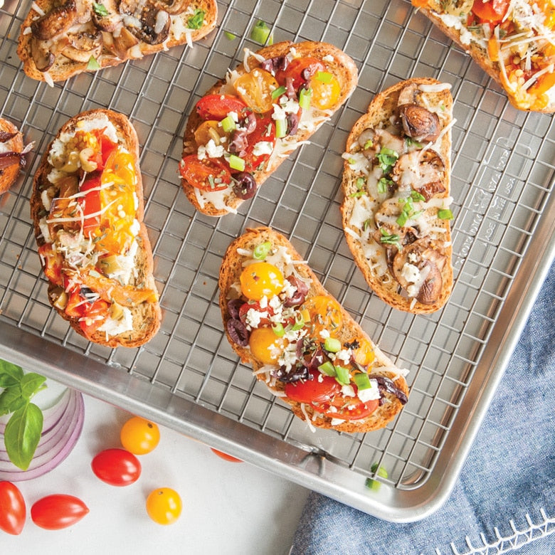 The Nordic Ware Naturals® Big Sheet teams up with a nesting oven-safe nonstick grid for a dynamic duo of versatility. Use together for oven crisping, or separate for a baking pan and cooling grid. Set includes Naturals Big Sheet with an imported oven-safe nonstick cooling grid