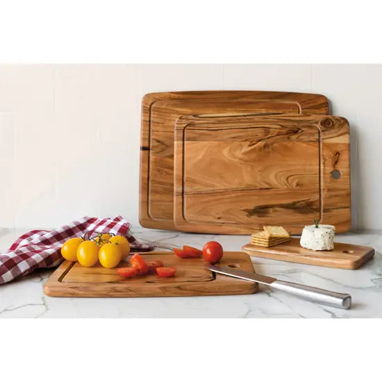 Introducing Now Designs' acacia wood cutting boards, sustainably sourced, hand crafted and stylishly functional. Each board showcases the unique beauty of the wood grain and adds a touch of rustic charm to your kitchen. Perfect for any eco-conscious cook looking for a little flair in their culinary tools!
