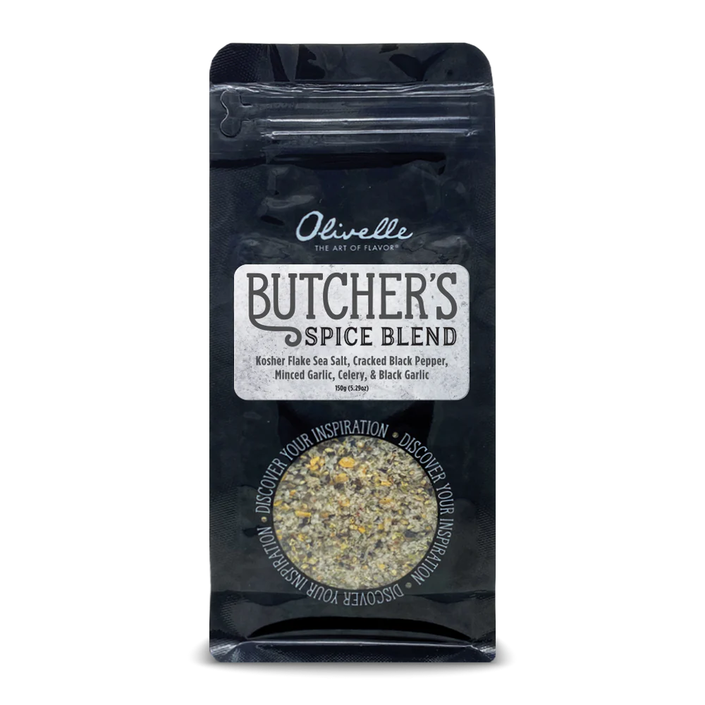 Butcher Blend: Grind, brine, and/or season with this blend of salt, peppercorns, garlic, and herbs. Use on meats and veggies or mix with water for a brine. Also great for adding flavor to eggs, salads, potatoes, and more.
