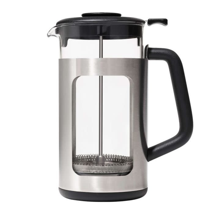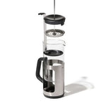 With the OXO Brew 8-Cup French Press, brewing the perfect cup of coffee becomes a joy! Say goodbye to the hassle of cleaning up with the innovative GroundsLifter - simply lift the handle clear out used grounds in one quick motion. The stainless steel housing protects and insulates the borosilicate glass carafe which will ensure a long life for your favorite coffee maker!