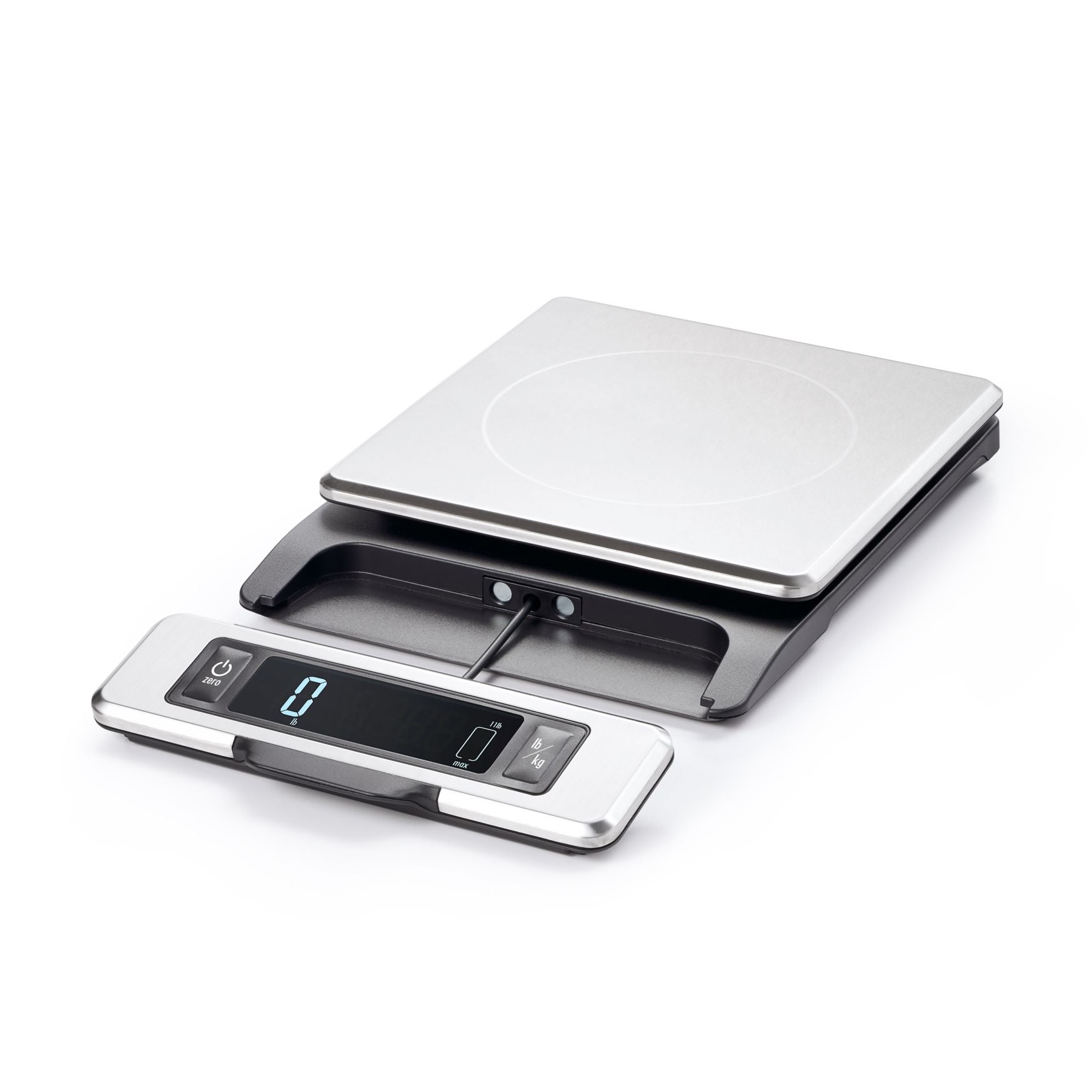 Oxo's Digital Food Scale is perfect for weighing all kinds of ingredients. Place items on the platform, pull the display away from the base to prevent shadows, and get accurate measurements for cooking, baking, or dieting. Use the zero button to offset container weight or reset to zero for more ingredients. The large, easy-to-read numbers measure in 1/8 ounces (US) and 1 gram (metric) increments, and the stainless steel platform is easy to clean (but avoid the dishwasher).