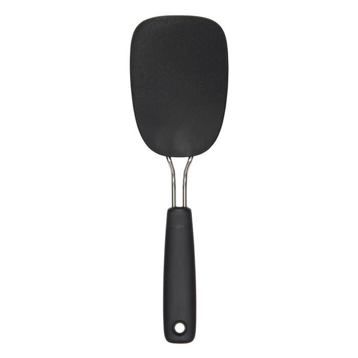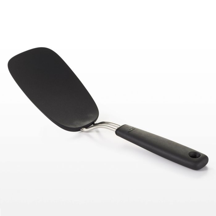 Flip your delicate dishes with ease using Oxo's Flex Pancake Turner-Black! From fish filets to omelets and crepes, the flexible nylon head effortlessly glides under foods in sauté pans or on cookie sheets. Plus, it can withstand heat up to 450°F.