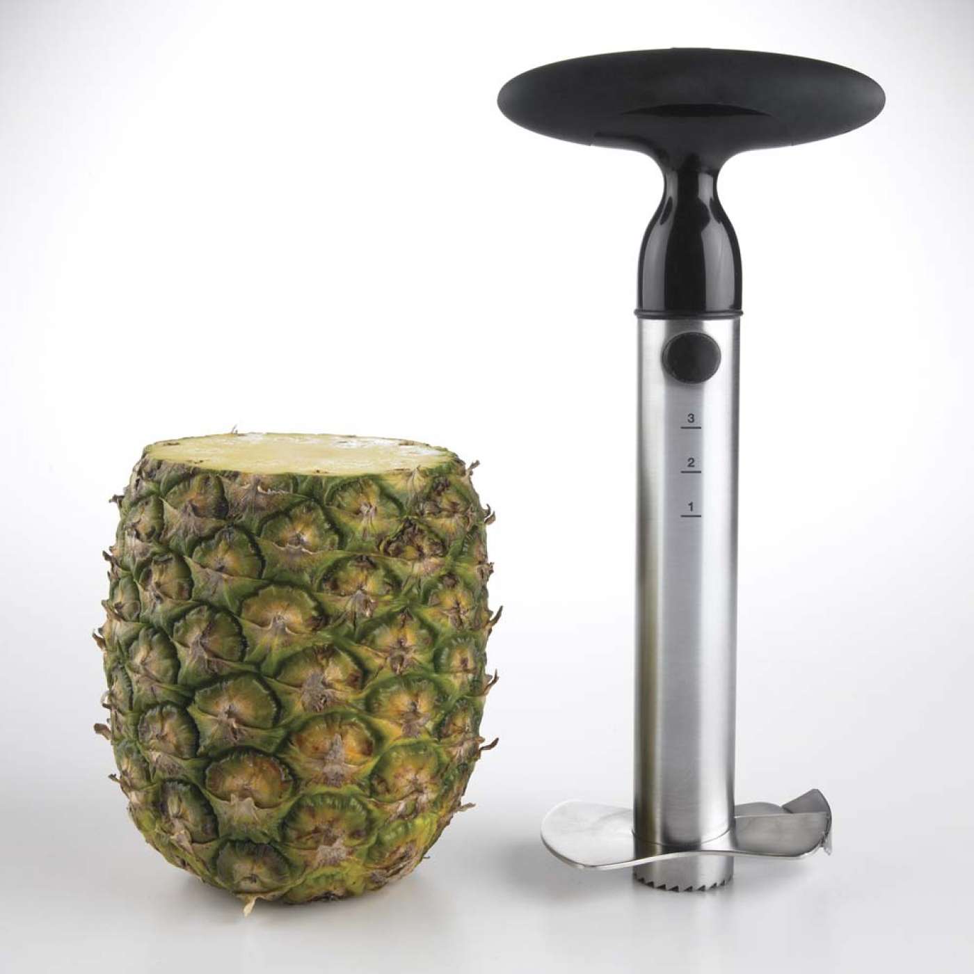 Cutting a pineapple? Oxo's Good Grips Ratcheting Pineapple slicer makes it so easy! Just slice off the top and then twist the pineapple slicer onto the fruit. It's easy on your arms and wrists, and with measurement markings, you'll know when you're reaching the bottom.