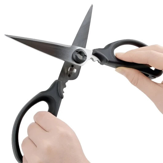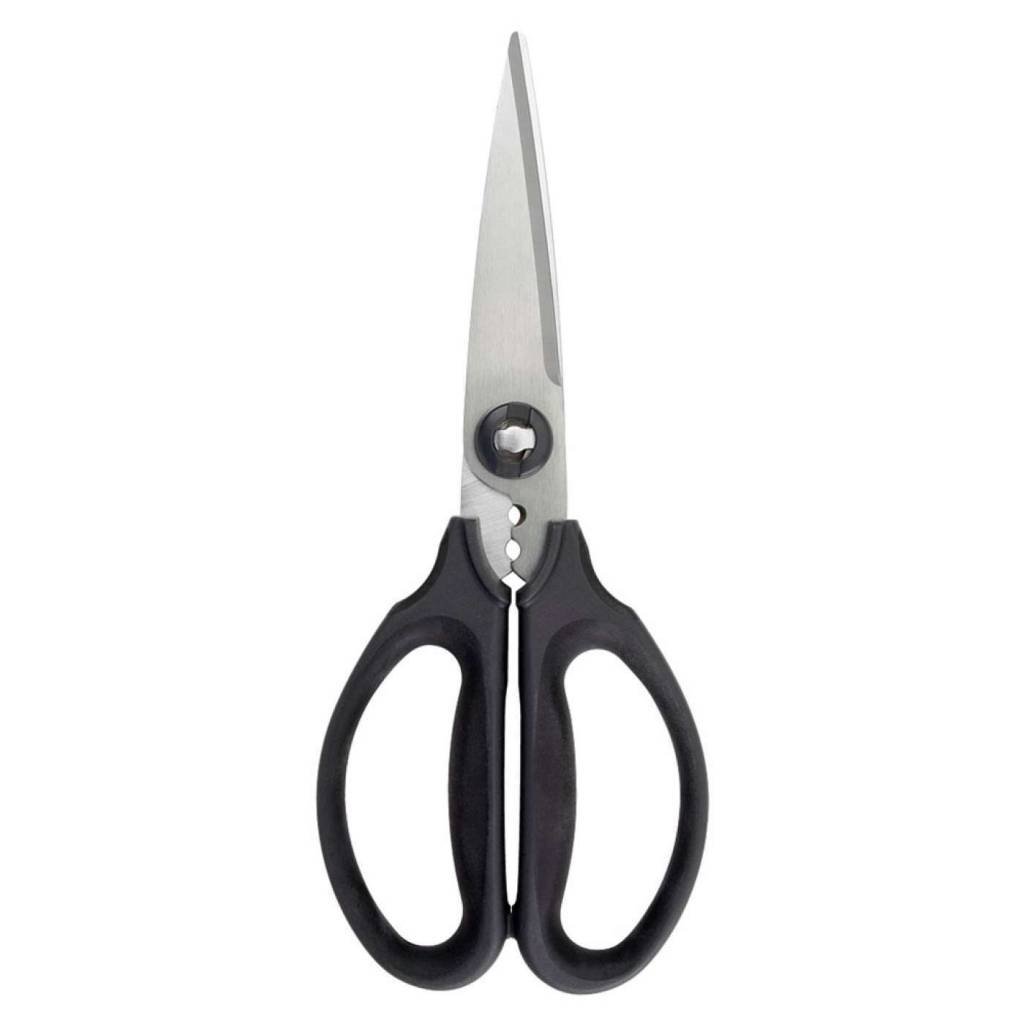Don't be caught without these Oxo Kitchen & Herb Scissors - perfect for slicing through meat, vegetables, and even twine. The cushy grips offer a comfortable cutting experience and the herb stripper up top eliminates pesky stems. Plus, the serrated blades come apart for hassle-free cleaning.