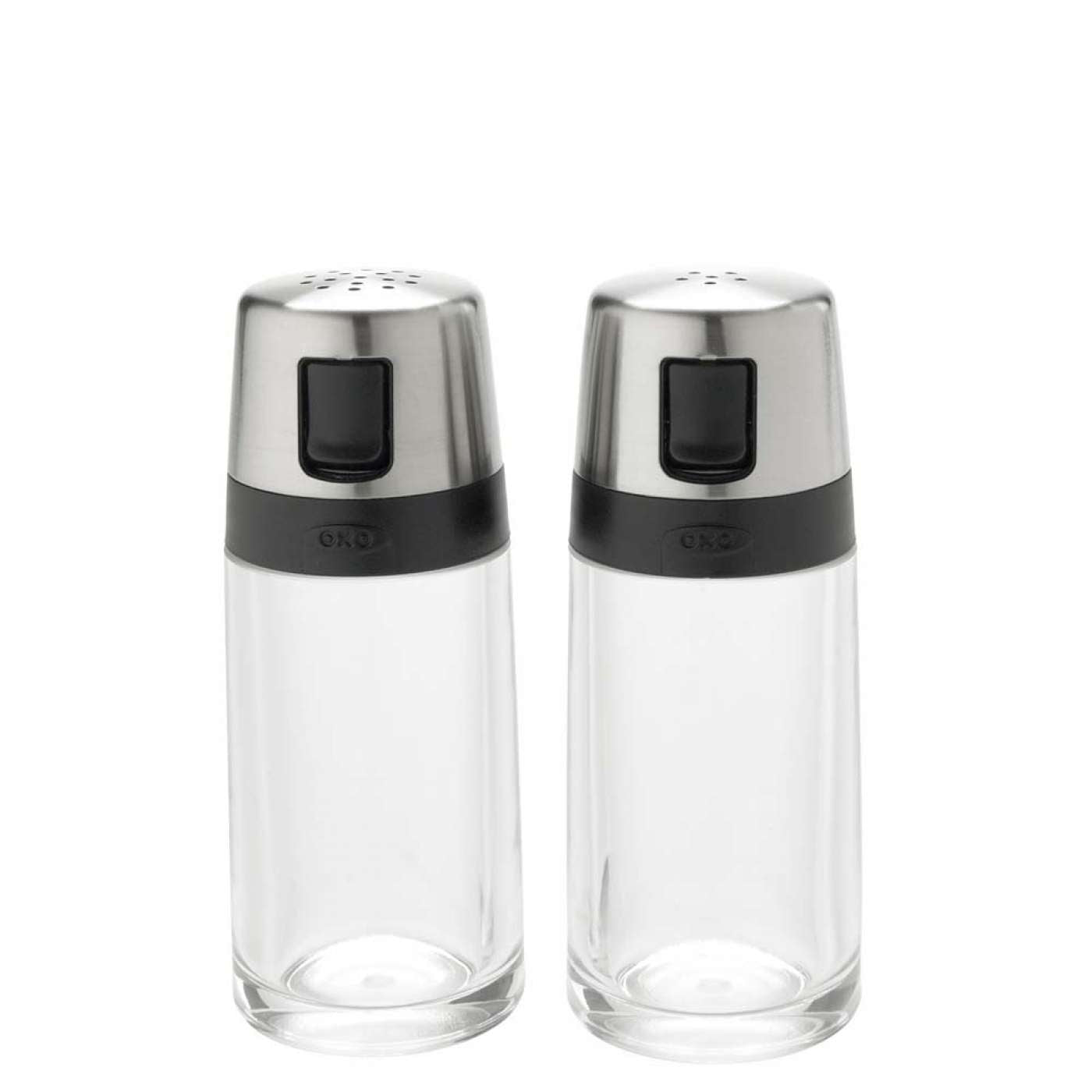 Oxo's Salt and Pepper shaker set are beautiful and practical! They shake or pour effortlessly. Whether you're in need of a pinch of pepper or a generous tablespoon of salt, these shakers have got you covered. Their clever hole design makes it easy to sprinkle just the right amount, while the pour spout lets you dispense larger quantities with ease.