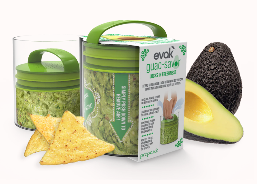 The Prepara Guac Savor keeps your guacamole fresh and prevents browning with its airtight seal. Simply push the plunger to remove air, and store your guac in the fridge with ease—no clips or switches required.