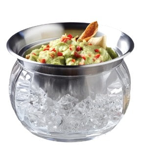 Keep your dips, sauces, condiments, and snacks refreshingly chilled with Prodyne's Dips on Ice Stainless Steel. The stainless steel upper dip bowl fits perfectly into the stylish lower acrylic ice bowl - simply fill with ice and water, and place the upper dip bowl on top. Your dips will stay chilled for hours, and a convenient snap-on lid is included. These versatile bowls can also be used separately as individual servers.