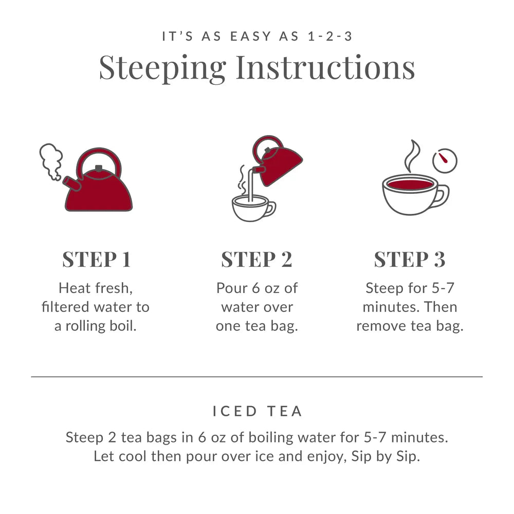 Premium organic Assam tea crafted for iced brewing. Eight generous pouches deliver a quart of bold, malty flavor with smooth finish. Steep at home for an effortless cup of sophisticated refreshment.