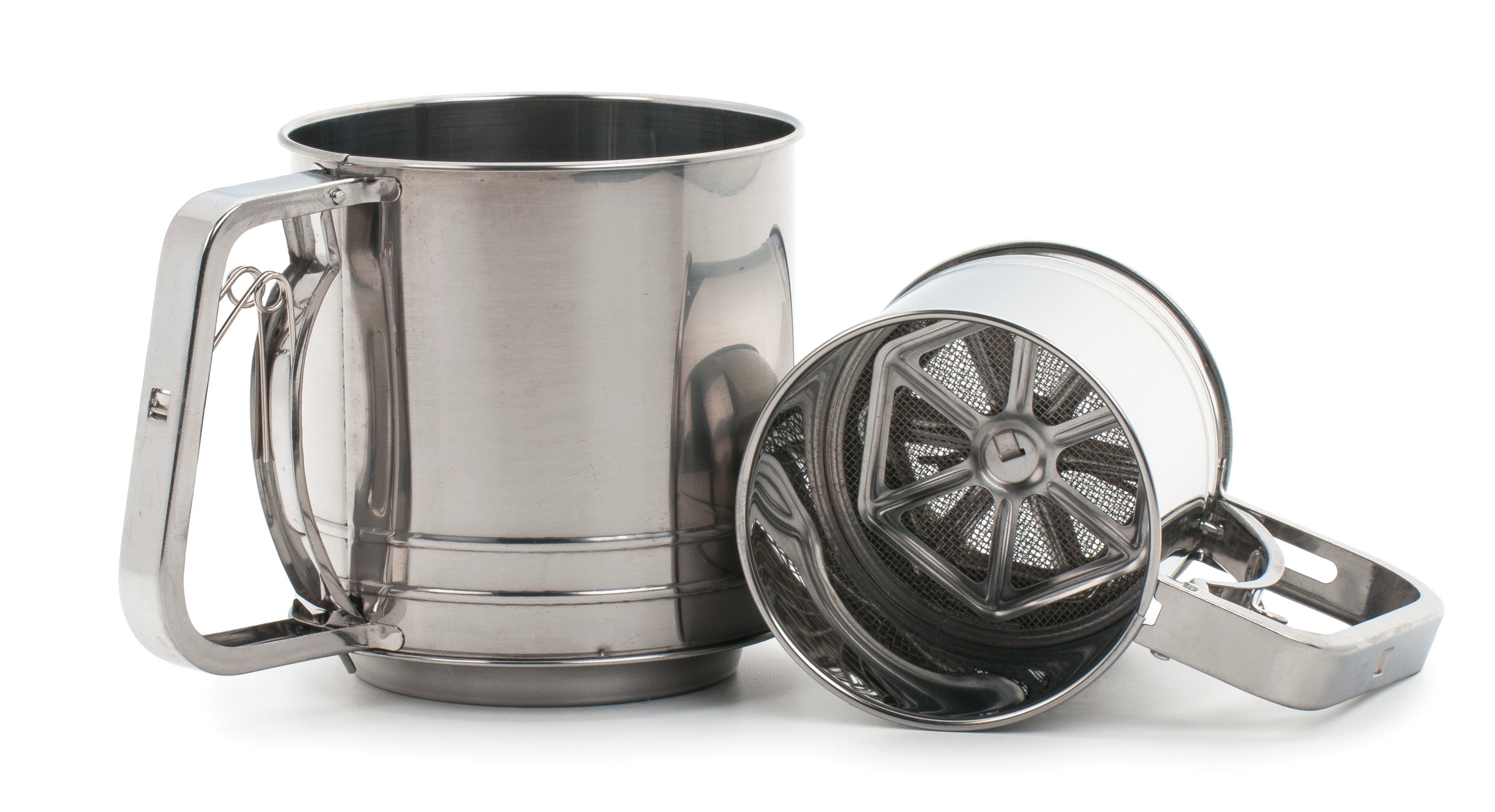 Effortlessly sift dry ingredients for perfectly blended batters and doughs with RSVP's Squeeze style flour sifter - an essential tool for any baker's arsenal.