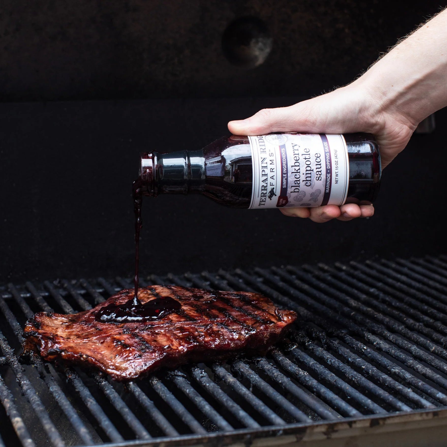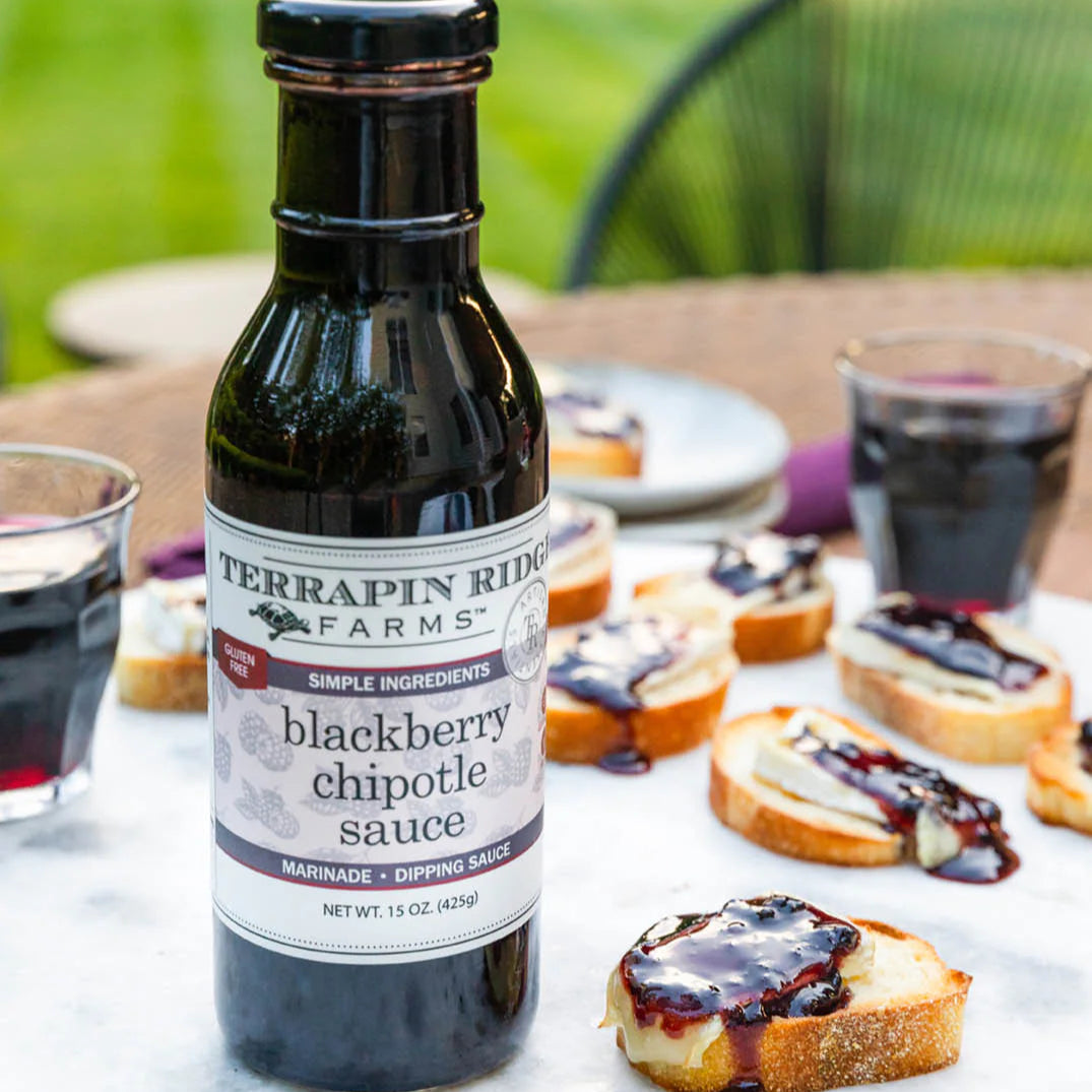 Sweet plump blackberries and smokey chipotle peppers combine to create a flavorful sauce that will delight your taste buds! This BBQ sauce is perfect for ribs, chicken, and pork tenderloin, as well as a tasty addition to pulled pork or chicken tacos. For a quick and easy appetizer, just pour over cream cheese.