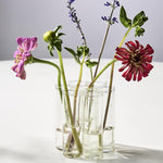 Transform your living space into a floral oasis with the Set of 7 Connected Tube Flower Vases. This exquisite glass arrangement allows you to display your favorite blooms in a unique and eye-catching way. Handcrafted with care, these vases are perfect for adding a touch of elegance to any room. Whether placed on a dining table or mantel, these vases will effortlessly elevate your home dècor.