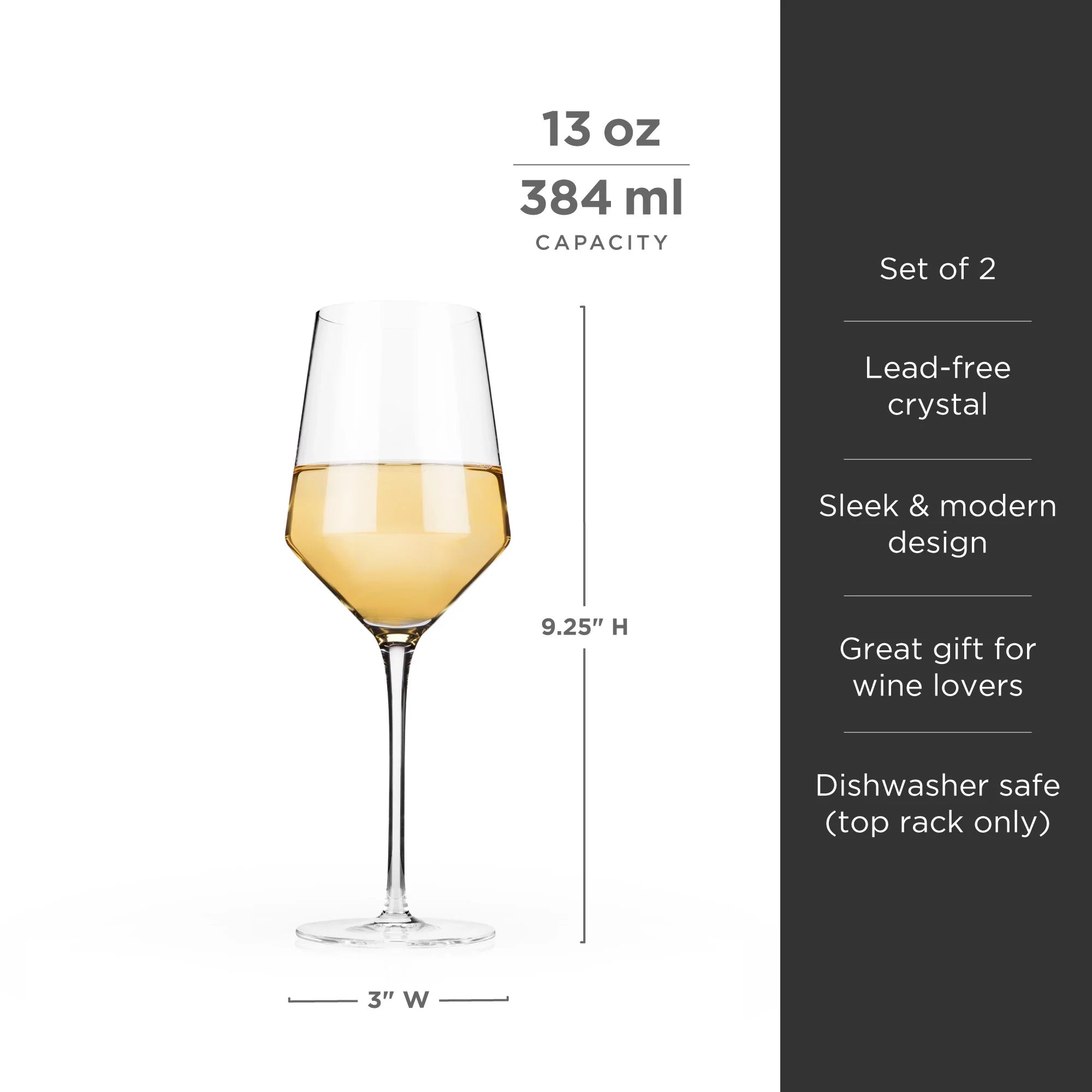 Viski Raye Angled Crystal Chardonnay Glasses s/2