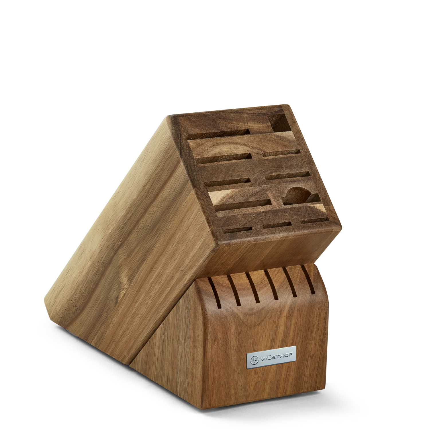 The WÜSTHOF 17-Slot Acacia Knife Block offers a safe and convenient way to store your knives and includes a slot for your honing/sharpening steel and kitchen shears. Please note, due to the nature of the wood, the color and grain pattern of each cutting board may vary.