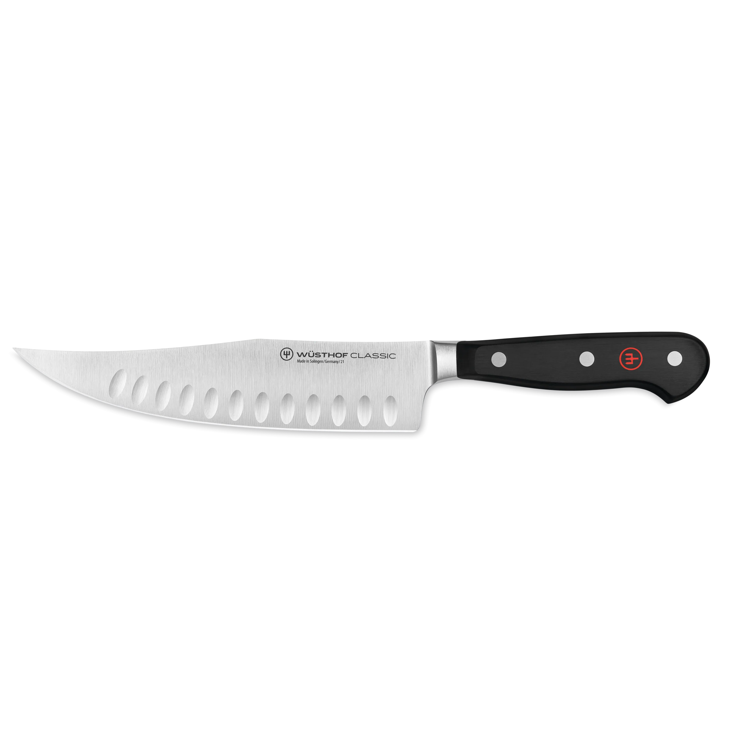 Inspired by farm-to-table cooking, the Craftsman is a hybrid design combining the features of a chef's knife, curved boning knife, and slicing knife. Forged from a single piece of high-carbon, stain-free steel, its blade is sharpened by WÜSTHOF's proprietary PEtec (Precision Edge Technology), which ensures a 20% sharper blade with twice the edge retention. A wide belly helps for rocking cuts, the clip-point tip facilitates easy maneuvering around joints for de-boning and filleting, and the hollow-edge design allows for smooth, precise carving and slicing.