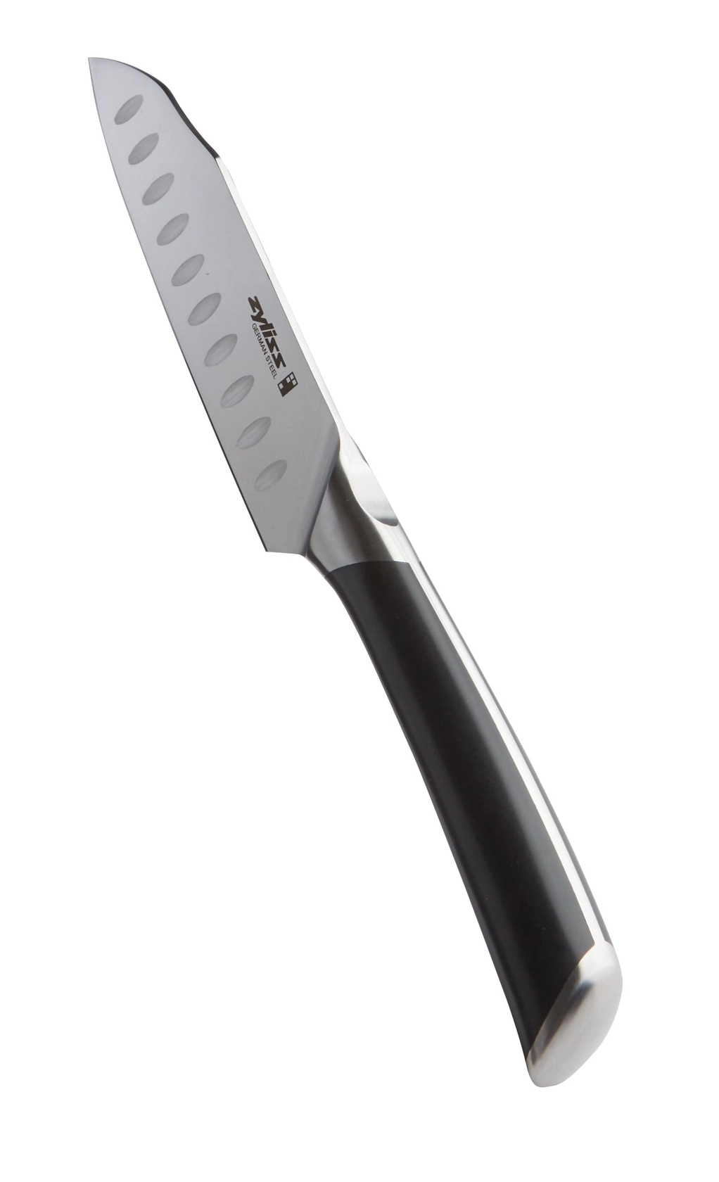 The Comfort Pro Santoku knife has indentation along the blade to ensure less food sticks. The ice-hardened 15° German Stainless steel blade glides through produce that is typically harder to cut, such as butternut squash. The ergonomic handle has been designed for ultimate comfort in everyday use. It fits perfectly in the hand and features a tapered bolster that allows a firm grip in use. The finger indent on top of the handle provides a comfortable position for placing the index finger when slicing with precision. * Forged from German Stainless Steel, with a sharp 15° taper-ground cutting edge, this all-purpose knife deliver superior cutting performance that lasts.